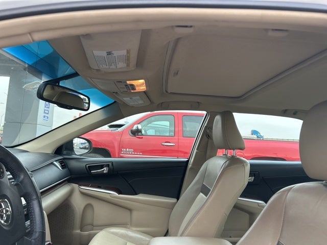 Super White 2014 Toyota Camry XLE FWD 6-Speed Automatic 3.5L V6 SMPI DOHC Sunroof, Ivory w/Leather Seat Trim, ABS brakes, Alloy wheels, Compass, Electronic Stability Control, Front dual zone A/C, Heated door mirrors, Heated Front Bucket Seats, Heated front seats, Illuminated entry, Leather Seat Trim, Low tire pressure warning, Power moonroof, Remote keyless entry, Traction control.
